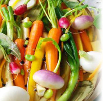 ピクルスを一口食べると心地よい酸味と甘みが口一杯に広がっていきます。その酸味が味覚や嗅覚を刺激して、食欲をコントロールしている脳の摂食中枢に働きかけて食欲がわいてくるという仕組みです。
